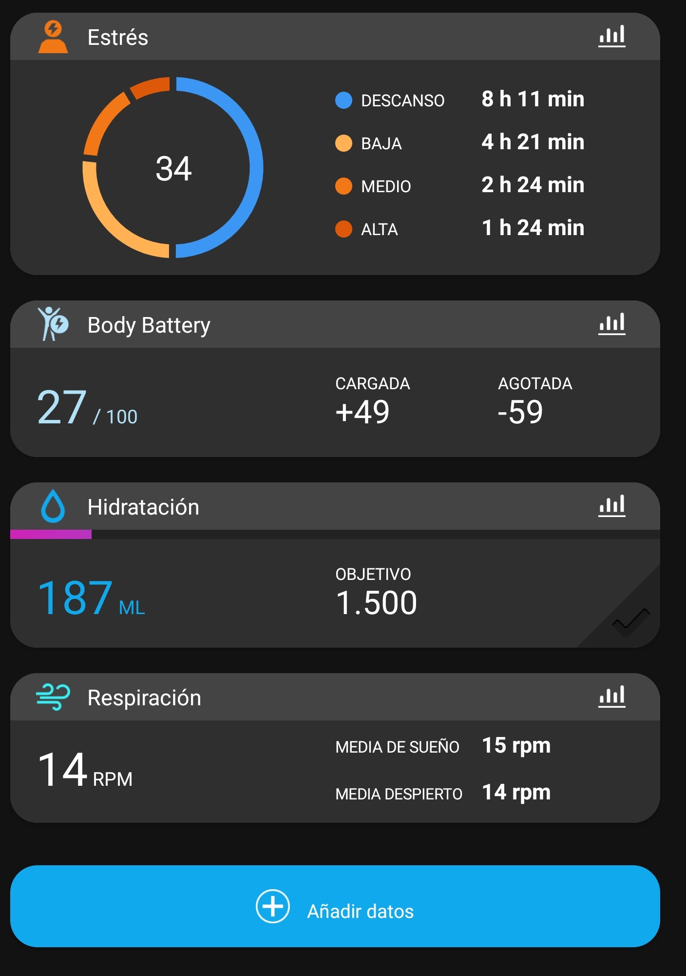 Ambos relojes tienen un seguimiento del estrés durante todo el día, pero el Garmin Venu 2 también permite tomar una « instantánea de la salud » en cualquier momento que desee. Simplemente seleccione la opción en la pantalla del reloj, luego quédese quieto durante 2 minutos, y el dispositivo capturará estadísticas que incluyen su frecuencia cardiaca promedio, nivel de estrés y frecuencia respiratoria.