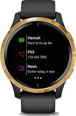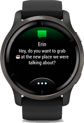 Puede recibir una notificación de aplicación de teléfono inteligente, notificaciones de llamadas y mensajes en cualquier modelo Venu, y desde ñps smartphone androud también pueden enviar respuestas o rechazar llamadas con una respuesta por SMS (especialmente práctico durante el entrenamiento).